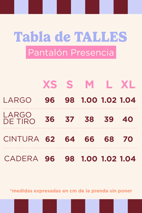 ATENCIÓN: las medidas que figuran en la tabla son en centímetros y DE LA PRENDA sin poner ni estirar.